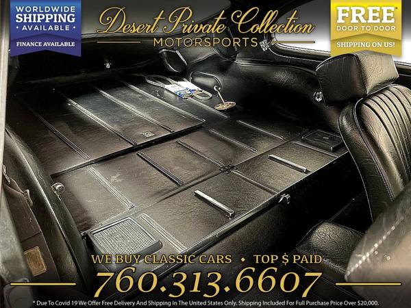 WE BUY CLASSIC CARS - CONSIGN and SELL - PHOTO SHOOT RENTAL IS AVAILABLE California buyers must pay CA sales tax , all prices in USD . Disclaimer-Finance Requirements listed at our website-Price does not include sales tax and DMV registration fees Monthly payment is based on approved Credit for more Inventory VISIT OUR WEBSITE https://www.desertprivatecollection.com/ or call (760) 313-6607 FOR CONSIGNMENT PLEASE CONTACT US (760) 313-6607