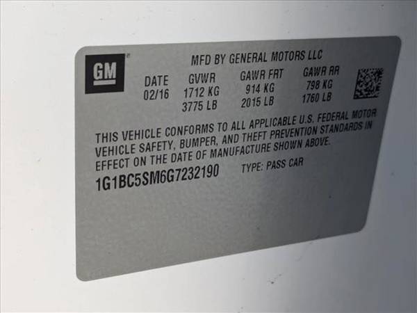 * License Plate Bracket; Front * Audio System; Chevrolet Mylink Radio With 7" Diagonal Color Touch-Screen * Emissions; California State Requirements * Engine; 1.4L Turbo Dohc 4-Cylinder Di * Jet Black; Cloth Seat Trim * Ls Preferred Equipment Group * Seats; Front Bucket With Reclining Seatbacks And Adjustable Head Restraints * Summit White * Transmission; 6-Speed AutomaticThis vehicle includes a Money-Back Guarantee* and passed our precise inspection process. Best of all the price you see is the price you pay. No haggling. No back and forth. No pressure. And this price is so good it is guaranteed. *Money-Back Guarantee is valid for 5 days or 250 miles, whichever comes first. Subject to certain terms and conditions. See store for details. Some restrictions apply.