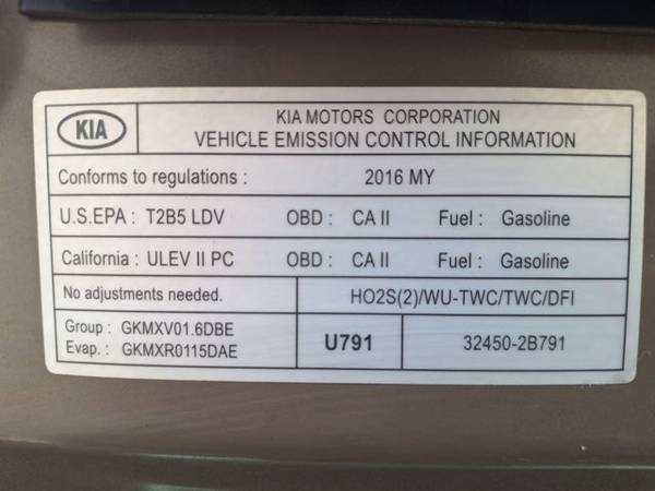 * Carpeted Floor Mats * Mud Guards * Cargo Net * Black; Cloth Seat Trim * Latte BrownThis vehicle includes a Money-Back Guarantee* and passed our precise inspection process. Best of all the price you see is the price you pay. No haggling. No back and forth. No pressure. And this price is so good it is guaranteed. *Money-Back Guarantee is valid for 5 days or 250 miles, whichever comes first. Subject to certain terms and conditions. See store for details. Some restrictions apply.AutoNation Toyota Cerritos is honored to present a wonderful example of pure vehicle design... this 2016 Kia Soul Base only has 84,037mi on it and could potentially be the vehicle of your dreams! Exceptional in every sense of the word, this incredibly low mileage vehicle is one of a kind. The look is unmistakably Kia, the smooth contours and cutting-edge technology of this Kia Soul Base will definitely turn heads. The quintessential Kia -- This Kia Soul Base speaks volumes about its owner, about uncompromising individuality, a passion for driving and standards far above the ordinary. More information about the 2016 Kia Soul: The Soul remains one of the more affordable vehicles on the market, priced in line with compact sedans, and it is very well-equipped and quite fuel-efficient. With the Soul's tiny parking footprint, it's easy to maneuver and park, still packing impressive interior space thanks to the boxy profile. Adults can fit comfortably in the back seat, which isn't the case with most other vehicles this size. Safety features also get a boost in the Soul; the stronger structure has already been proven with Insurance Institute for Highway Safety (IIHS) Top Safety Pick status plus a federal 5-star overall rating. Strengths of this model include a feature set unlike other compact cars, improved ride and handling, boxy design opens up lot of passenger space, Trend-setting style, and versatility for cargo Click for more information, Call to set up an appointment, or better yet, come on down to Toyota of Cerritos and get behind the wheel for a test drive today!