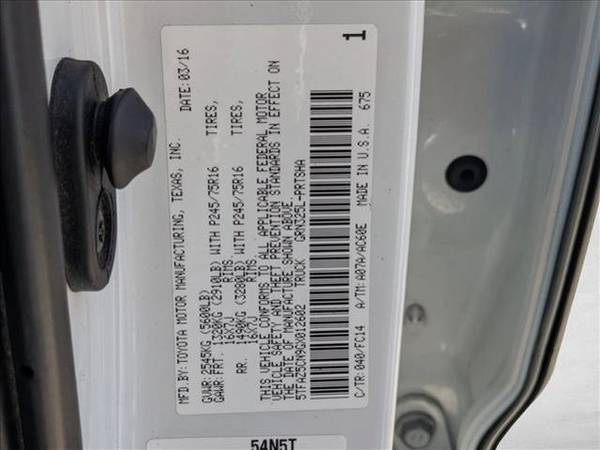 * Sr5 Appearance Package (Sn) * Towing Package * 5" Black Oval Tube Steps * Carpet Floor Mats * Exhaust Tip * D-Rings * 50 State Emissions * Cement Gray; Fabric Seat Trim (Fc) * Super WhiteThis vehicle includes a Money-Back Guarantee* and passed our precise inspection process. Best of all the price you see is the price you pay. No haggling. No back and forth. No pressure. And this price is so good it is guaranteed. *Money-Back Guarantee is valid for 5 days or 250 miles, whichever comes first. Subject to certain terms and conditions. See store for details. Some restrictions apply.We'll Buy Your Car Riverside has a wide selection of exceptional pre-owned vehicles to choose from, including this 2016 Toyota Tacoma. In addition to being well-cared for, this Toyota Tacoma has very low mileage making it a rare find. There is no reason why you shouldn't buy this Toyota Tacoma SR5. It is incomparable for the price and quality. Just what you've been looking for. With quality in mind, this vehicle is the perfect addition to take home. More information about the 2016 Toyota Tacoma: The Tacoma starts at just above $23,000, and competes with other compact pickup trucks like the Chevrolet Colorado and the Nissan Frontier. However, neither of these competitors has Toyota's reputation for quality, safety and longevity. Unlike full-sized trucks, the Tacoma is small enough to make sense in both urban and suburban environments. The Tacoma can maneuver nimbly in tight parking lots, and its turning radius is kept reasonable. At the same time, the Tacoma offers the kind of utility that compact SUVs can only dream of. With a broad range of customization options, the Tacoma offers a surprisingly amount of comfort, and even gives owners the kind of interior space normally found in sedans. The Tacoma is truly a 'do-everything' vehicle. This model sets itself apart with low base price, legendary reliability, high resale value, eminently capable, and Roomy cabin