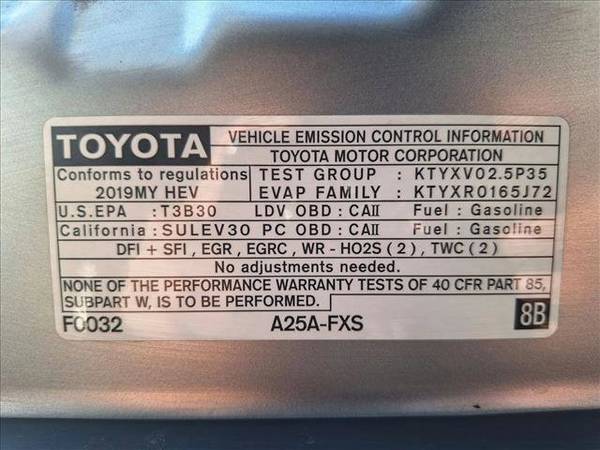 * Mat * Lane Keeping Assist * Keyless Start * 50 State Emissions * Ash; Fabric Seat Trim * Celestial Silver MetallicThis vehicle includes a Money-Back Guarantee* and passed our precise inspection process. Best of all the price you see is the price you pay. No haggling. No back and forth. No pressure. And this price is so good it is guaranteed. *Money-Back Guarantee is valid for 5 days or 250 miles, whichever comes first. Subject to certain terms and conditions. See store for details. Some restrictions apply.You can find this 2019 Toyota Camry Hybrid LE and many others like it at AutoNation Toyota Cerritos. This Toyota includes: ASH, FABRIC SEAT TRIM Cloth Seats CELESTIAL SILVER METALLIC *Note - For third party subscriptions or services, please contact the dealer for more information.* This exceptional 2019 Camry Hybrid LE has passed the Toyota stringent standards and has been hand-selected to become a Certified Pre-Owned vehicle. The quality of this vehicle will undoubtedly ensure a worry-free buying experience. The greater your fuel-efficiency, the less your carbon footprint. And with exceptional MPGs, this Toyota Camry treads ever so lightly on Mother Earth. You can finally stop searching... You've found the one you've been looking for. Click for more information, Call to set up an appointment, or better yet, come on down to Toyota of Cerritos and get behind the wheel for a test drive today!