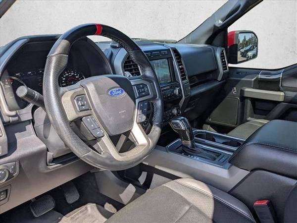 * Equipment Group 802A Luxury * Wheels: 17" Forged Aluminum Bead-Lock Capable * Twin Panel Moonroof * Raptor Exterior Graphics Package * Raptor Carbon Fiber Package * Raptor Hood Graphics Package * Voice-Activated Touchscreen Navigation * Panoramic Roof * Tough Bed Spray-In Bedliner * 4.10 Front Axle W/Torsen Differential * Leather Seats * Navigation System * Pro Trailer Backup Assist * Rapid Red Metallic Tinted Clearcoat * 360 Degree Camera * Tailgate Step W/Tailgate Lift Assist * Integrated Trailer Brake Controller * Inflatable Rear Safety Belts * Remote Start System * Led Sideview Mirror Spotlights * Led Box Lighting * Second-Row Heated Seats * Lane Keeping Assist * Keyless Start * Cooled Front Seat(S) * Black; Heated Leather 40/Console/40 Front Seats * California Emissions System * Engine: 3.5L V6 Ecoboost High Output * Front License Plate Bracket * Transmission: Electronic 10-Speed AutomaticThis vehicle includes a Money-Back Guarantee* and passed our precise inspection process. Best of all the price you see is the price you pay. No haggling. No back and forth. No pressure. And this price is so good it is guaranteed. *Money-Back Guarantee is valid for 5 days or 250 miles, whichever comes first. Subject to certain terms and conditions. See store for details. Some restrictions apply.