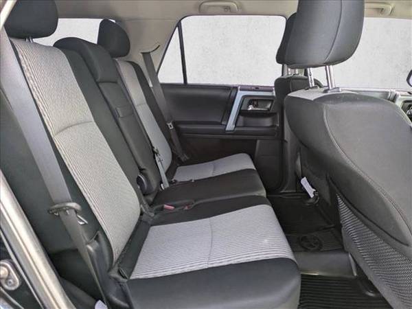 * Radio: Premium Audio W/Dynamic Navigation * Fabric-Trimmed 50/50 Split Fold-Flat 3Rd Row * Navigation System * 3rd Row Seat * All-Weather Floor Liners/Cargo Tray Package * Roof Rack Cross Bars * Door Edge Guards * Rear Spoiler * 50 State Emissions * Black/Graphite; Low Fabric Seat Trim * Midnight Black Metallic * Keep It Wild SavingsThis vehicle includes a Money-Back Guarantee* and passed our precise inspection process. Best of all the price you see is the price you pay. No haggling. No back and forth. No pressure. And this price is so good it is guaranteed. *Money-Back Guarantee is valid for 5 days or 250 miles, whichever comes first. Subject to certain terms and conditions. See store for details. Some restrictions apply.Looking for a clean, well-cared for 2020 Toyota 4Runner? This is it. With this exceptional SUV, you'll get "sport," "utility," and comfort. The look is unmistakably Toyota, the smooth contours and cutting-edge technology of this Toyota 4Runner SR5 will definitely turn heads. There is no reason why you shouldn't buy this Toyota 4Runner SR5. It is incomparable for the price and quality. You've found the one you've been looking for. Your dream car.