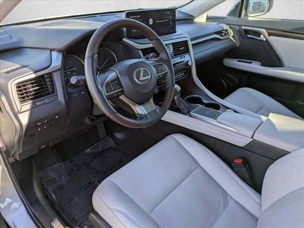 * 12.3" Navigation System * Panoramic View Monitor W/Rr Cross-Traffic Braking * Tilt & Slide Moonroof * Wheels: 20" Split-5-Spoke Dark Silver Alloy * Heated & Ventilated Front Seats * Sun/Moonroof * Premium Package * Navigation System * Heated Wood & Leather-Trimmed Steering Wheel * Cold Weather Package * 3500 Lbs Tow Prep Package * Wireless Charger * Lane Keeping Assist * Keyless Start * Rear Spoiler * Cooled Front Seat(S) * Accessory Package * All-Weather Floor Liners W/Cargo Tray * Atomic Silver * Birch; Nuluxe Seat TrimThis vehicle includes a Money-Back Guarantee* and passed our precise inspection process. Best of all the price you see is the price you pay. No haggling. No back and forth. No pressure. And this price is so good it is guaranteed. *Money-Back Guarantee is valid for 5 days or 250 miles, whichever comes first. Subject to certain terms and conditions. See store for details. Some restrictions apply.The Lexus RX is the benchmark all other SUVs strive to meet. With exceptional power, towing and handling, this SUV can handle anything thrown at it. Once you see this Lexus, you'll quickly see that this is the perfect vehicle for the outdoor junky! You'll even feel relaxed knowing that this All-Wheel drive vehicle will get you to where you are going no matter what may come your way. Also, with this Lexus RX's dependable control you'll be able to drive into the sunset without a care in the world! There is no reason why you shouldn't buy this Lexus RX RX 450h. It is incomparable for the price and quality. A truly breathtaking example of pure vehicle design achievement...this is the vehicle of your dreams!