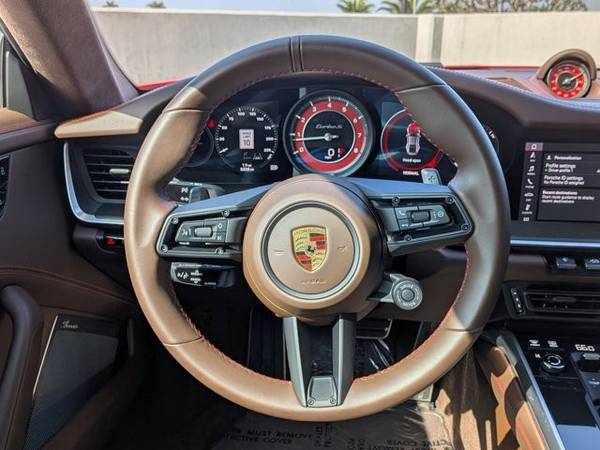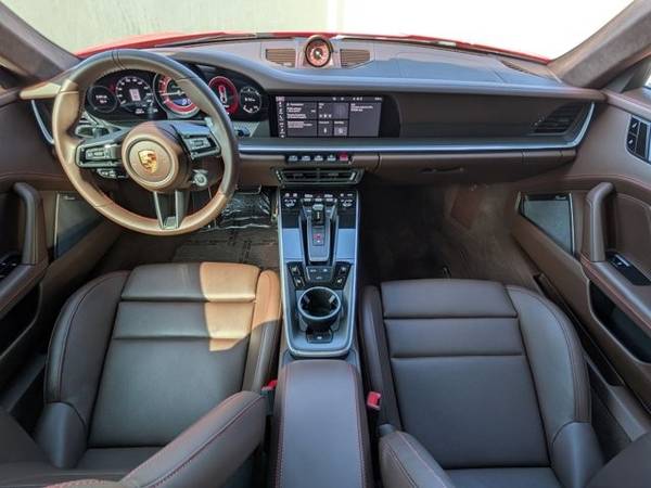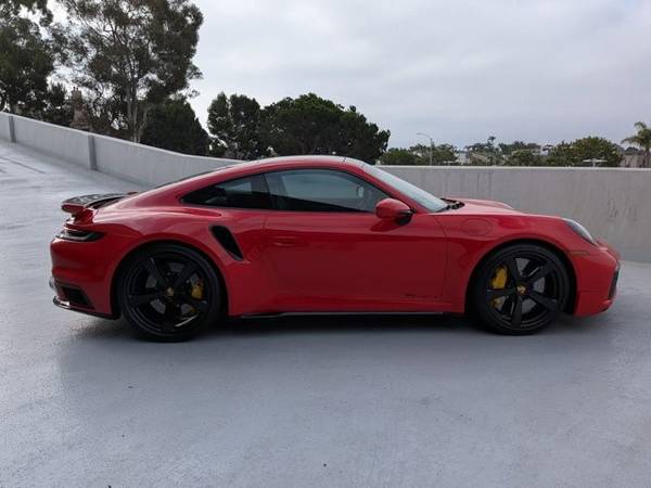 * Burmester ® High-End Surround Sound System * Deviated Stitching Interior Package * Sport Exhaust System W/Tailpipes In Black * Front Axle Lift System * Electric Slide/Tilt Sunroof In Glass * Pasm Sport Suspension (Lowered 10Mm) * Surround View * Wheels Painted In High Gloss Black * Illuminated Door-Sill Guards In Matte Carbon Fiber * Lightweight & Noise Insulated Glass * Lane Keep Assist (Lka) W/Traffic Sign Recognition * Truffle Brown; Club Leather Seat Trim * Lane Change Assist (Lca) * Ventilated Front Seats * Led-Matrix Design Headlights In Black W/Pdls+ * Rr Lid Grille Vertical Slat Inlays In Exterior Color * Exterior Mirror Base In High Gloss Black * Rear Side Air Intakes In High Gloss Black * Sun Visors In Race-Tex * Ambient Lighting * Sun/Moonroof * Seat Belts In Truffle Brown * Electric Steering Column W/Casing In Leather * Window Trim In High Gloss Black * Leather Seats * Navigation System * Central Tachometer In Guards Red * Sport Chrono Stopwatch Dial In Guards Red * Ionizer * 911 Turbo S Logo On Doors In Black * Porsche Logo On Rear In High Gloss Black * Power Steering Plus * 911 Turbo S Logo On Rear In High Gloss Black * Under Door Puddle Light Projectors * Lane Keeping Assist * Keyless Start * Rear Spoiler * Cooled Front Seat(S) * Color Selection For Deviated Stitching * Guards Red * Heated Gt Sport Steering Wheel * Smoking Package * Storage Package * Wheels: 20" Fr/21" Rr 911 Turbo Exclusive DesignThis vehicle includes a Money-Back Guarantee* and passed our precise inspection process. Best of all the price you see is the price you pay. No haggling. No back and forth. No pressure. And this price is so good it is guaranteed. *Money-Back Guarantee is valid for 5 days or 250 miles, whichever comes first. Subject to certain terms and conditions. See store for details. Some restrictions apply.2021 Porsche 911 Turbo S Guards Red over Truffle Brown Leather 5,838 Miles Widely regarded as one of the most complete modern supercars, the 992-generation 911 Turbo S combines relentless performance with the craftsmanship and engineering precision for which Porsche is celebrated. This example, finished in the iconic Guards Red over the rare Club Leather interior in Truffle Brown , is a beautifully specified, collector-worthy car showing just 5,838 miles from new . This Turbo S carries an exceptional list of factory options that elevate it far above standard specification. Highlights include the SportDesign Package in High Gloss Black , Exclusive Design 20/21 wheels in High Gloss Black , Sport Exhaust System , PASM Sport Suspension (10mm lower) , and the essential Front Axle Lift System . The interior is distinguished by Burmester High-End Surround Sound , extended leather with deviated stitching , carbon fiber illuminated door sills , and bespoke touches such as Truffle Brown seat belts, Guards Red Sport Chrono dial, and leather-wrapped details throughout. Technically, the Turbo S remains unmatched in its class: a 3.8-liter twin-turbocharged flat-six producing 640 horsepower and 590 lb-ft of torque , delivered through the 8-speed PDK transmission to all four wheels. Performance figures remain astounding even in todays supercar landscape 060 mph in 2.6 seconds and a top speed of 205 mph all while offering daily usability and comfort. Notable Options & Features: Guards Red exterior / Club Leather in Truffle Brown SportDesign Package in High Gloss Black ($6,150) 20/21 Exclusive Design Wheels in High Gloss Black ($1,290) Sport Exhaust System incl. Black Tailpipes ($3,490) PASM Sport Suspension, lowered 10mm ($1,510) Front Axle Lift System ($2,770) Electric Glass Sunroof ($2,000) Lightweight & Noise Insulated Glass ($1,250) LED-Matrix Design Headlights in Black w/ PDLS+ ($750) Burmester High-End Surround Sound ($3,980) Lane Change Assist & Lane Keep Assist w/ Traffic Sign Recognition ($2,280) Surround View Camera ($1,430) Ventilated Seats & Heated Steering Wheel ($1,120 combined) Deviated Stitching Interior Package ($3,650) Carbon Fiber Illuminated Door Sill Guards ($1,280) Sport Chrono Stopwatch Dial & Central Tachometer in Guards Red ($840) Additional Details: VIN: WP0AD2A91MS258149 Mileage: 5,838 miles This Turbo S presents a rare opportunity to acquire a low-mileage, impeccably optioned example of Porsches flagship 911. Its combination of performance, specification, and condition ensures strong appeal to both collectors and dedicated Porsche enthusiasts. A truly investment-grade 911 Turbo S, offered in an iconic specification.