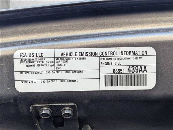 * Steel Bumper Group * Black 3-Piece Hard Top * Led Lighting Group * Cold Weather Group * Safety Group * Mopar Hardtop Headliner * Navigation System * Granite Crystal Metallic Clearcoat * Mopar Satin Black Grille * Corning Gorilla Glass * Tires: Lt285/70R17C Owl Off-Road * Mopar All-Weather Floor Mats * Keyless Start * Convertible Hardtop * 4.10 Rear Axle Ratio * Black; Premium Cloth Low-Back Bucket Seats * Engine: 3.6L V6 24V Vvt Upg I W/Ess * Front License Plate Bracket * Gvwr: 5;350 Lbs * Transmission: 6-Speed Manual * Wheels: 17" X 7.5" Machined W/Black PocketsThis vehicle includes a Money-Back Guarantee* and passed our precise inspection process. Best of all the price you see is the price you pay. No haggling. No back and forth. No pressure. And this price is so good it is guaranteed. *Money-Back Guarantee is valid for 5 days or 250 miles, whichever comes first. Subject to certain terms and conditions. See store for details. Some restrictions apply.AutoNation Chrysler Dodge Jeep Ram Valencia Call 661-219-0600 Thank you for your interest in this 2022 Jeep Wrangler at AutoNation Chrysler Dodge Jeep Ram Valencia. This pre-owned vehicle is one of thousands in our massive used car inventory at AutoNation. This Jeep includes: 4.10 REAR AXLE RATIO (STD) SAFETY GROUP Rear Parking Aid Blind Spot Monitor Cross-Traffic Alert MOPAR ALL-WEATHER FLOOR MATS Floor Mats TRANSMISSION: 6-SPEED MANUAL (STD) 6-Speed M/T M/T LED LIGHTING GROUP Fog Lamps Daytime Running Lights LED Headlights WHEELS: 17 Aluminum Wheels COLD WEATHER GROUP Heated Steering Wheel Heated Front Seat(s) GRANITE CRYSTAL METALLIC CLEARCOAT GVWR: 5,350 LBS (STD) ENGINE: 3.6L V6 24V VVT UPG V6 Cylinder Engine Gasoline Fuel BLACK, PREMIUM CLOTH LOW-BACK BUCKET SEATS Cloth Seats Bucket Seats MOPAR SATIN BLACK GRILLE FRONT LICENSE PLATE BRACKET TIRES: LT285/70R17C OWL OFF-ROAD Tires - Rear All-Terrain Tires - Front All-Terrain MOPAR HARDTOP HEADLINER BLACK 3-PIECE HARD TOP Targa Roof Rear Defrost Convertible Hardtop STEEL BUMPER GROUP CORNING GORILLA GLASS *Note - For third party subscriptions or services, please contact the dealer for more information.* This SUV is a superb example of what a tough, work focused vehicle should be. Exceptional towing, acceleration and torque will help you get the job done. This Jeep Wrangler Rubicon is for the discerning driver who demands the utmost of his vehicle. This 4WD-equipped vehicle will handle beautifully on any terrain and in any weather condition your may find yourself in. The benefits of driving a 4 wheel drive vehicle, such as this Jeep Wrangler Rubicon, include superior traction and stability. The Wrangler Rubicon is well maintained and has just 19,726mi. This low amount of miles makes this vehicle incomparable to the competition. Performance, ease of use and efficiency are just a few reasons you'll love the navigation system that comes with this car. AutoNation Chrysler Dodge Jeep Ram Valencia Call 661-219-0600 23820 Creekside Dr. Valencia Ca 91355