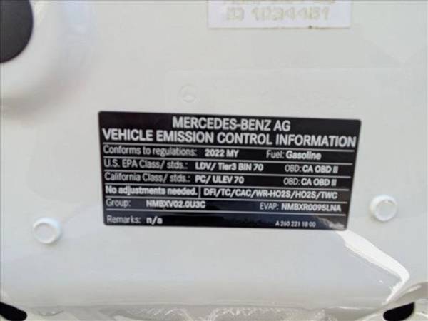 * Premium Package Lite * Panoramic Roof * Wheels: 19" Twin-5-Spoke Alloy * Heated Front Seats * Natural Grain Brown Walnut Wood Trim * Rear Spoiler * Garage Door Opener * SiriusXM Satellite Radio * Wheel Locking Bolts * Keyless Start * Rear Spoiler * First Aid Kit * Macchiato Beige; Mb-Tex Leatherette Seat Trim * Polar WhiteThis vehicle includes a Money-Back Guarantee* and passed our precise inspection process. Best of all the price you see is the price you pay. No haggling. No back and forth. No pressure. And this price is so good it is guaranteed. *Money-Back Guarantee is valid for 5 days or 250 miles, whichever comes first. Subject to certain terms and conditions. See store for details. Some restrictions apply.Check out this pre-owned 2022 Mercedes-Benz CLA we recently got in. This is a Certified Pre-owned vehicle, so you can feel rest assured that it has been meticulously inspected from top to bottom. The impressive Mercedes-Benz fuel-efficiency will make you quickly realize what you've been missing out on in life. It's noteworthy fuel economy and minimal emissions make this vehicle's value a cut above the rest. You can tell this 2022 Mercedes-Benz CLA has been pampered by the fact that it has less than 25,004mi and appears with a showroom shine. There are many vehicles on the market but if you are looking for a vehicle that will perform as good as it looks then this Mercedes-Benz CLA CLA 250 is the one!