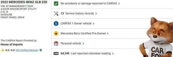 The following items have been reconditioned on this vehicle: new brakes and new pair of tires! * Premium Package * Garage Door Opener * Wheel Locking Bolts * Keyless Start * Rear Spoiler * Black Headliner * Black; Mb-Tex Upholstery * Polar White * Spiral Look Trim * Wheels: 7.5J X 18" Twin 5-SpokeThis vehicle includes a Money-Back Guarantee* and passed our precise inspection process. Best of all the price you see is the price you pay. No haggling. No back and forth. No pressure. And this price is so good it is guaranteed. *Money-Back Guarantee is valid for 5 days or 250 miles, whichever comes first. Subject to certain terms and conditions. See store for details. Some restrictions apply.This Mercedes-Benz GLB GLB 250 has a tough exterior complemented by a well-designed interior that offers all the comforts you crave. The Mercedes-Benz GLB GLB 250 is economically and environmentally smart. Mercedes-Benz clearly delivers on its promise to provide a fuel-efficient vehicle that has the great qualities you need in a vehicle. Based on the superb condition of this vehicle, along with the options and color, this Mercedes-Benz GLB GLB 250 is sure to sell fast. A truly breathtaking example of pure vehicle design achievement...this is the vehicle of your dreams!