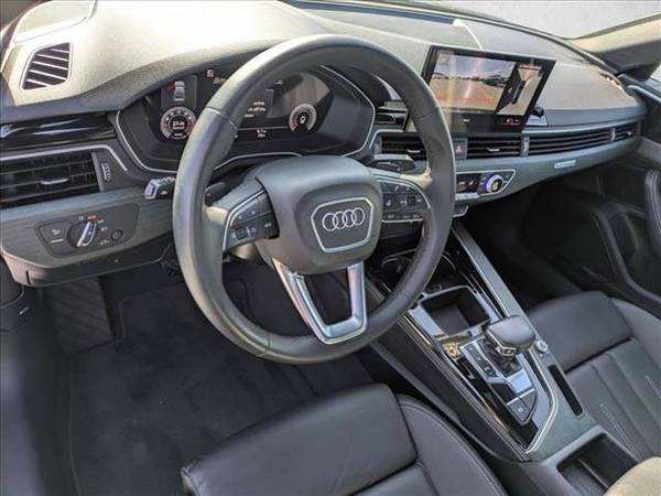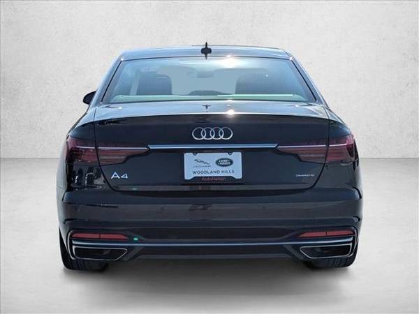 * Mythos Black Metallic * Sun/Moonroof * Leather Seats * Keyless Start * Black; Leather/Dinamica Seating SurfacesThis vehicle includes a Money-Back Guarantee* and passed our precise inspection process. Best of all the price you see is the price you pay. No haggling. No back and forth. No pressure. And this price is so good it is guaranteed. *Money-Back Guarantee is valid for 5 days or 250 miles, whichever comes first. Subject to certain terms and conditions. See store for details. Some restrictions apply.This 2023 Audi A4 Sedan S line Premium Plus is offered to you for sale by Jaguar Land Rover Woodland Hills. This Audi A4 Sedan S line Premium Plus is for the discerning driver who demands the utmost of his vehicle. The Audi A4 Sedan S line Premium Plus speaks volumes about it's driver, uncompromising individuality, passion for driving, and standards far above the ordinary. It's exceptional fuel-efficiency is a clear sign that not all vehicles are created with the same standards. Once you see this Audi, you'll quickly see that this is the perfect vehicle for the outdoor junky! You'll even feel relaxed knowing that this All-Wheel drive vehicle will get you to where you are going no matter what may come your way. Also, with this Audi A4 Sedan's dependable control you'll be able to drive into the sunset without a care in the world! With less than 28,130mi on this Audi A4 Sedan, you'll appreciate the practically showroom newness of this vehicle. Added comfort with contemporary style is the leather interior to heighten the quality and craftsmanship for the Audi A4 Sedan S line Premium Plus.