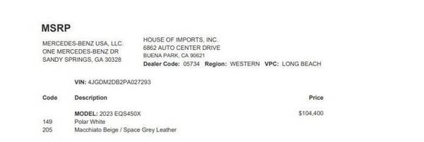 The following items have been reconditioned on this vehicle: new brakes and all new tires! * Wheels: 21" X 9.5J 5-Spoke W/Blue Accents * Aerodynamic Illuminated Running Boards * Panoramic Roof * Active Ambient Lighting * Leather Seats * Navigation System * 110V Household Charging Cable * Wheel Locking Bolts * All-Season Cargo Mat * Lane Keeping Assist * Keyless Start * Rear Spoiler * Cooled Front Seat(S) * Brown Magnolia W/Aluminum Mercedes-Benz Stars * Macchiato Beige Headliner * Macchiato Beige/Grey; Leather Upholstery * Polar WhiteThis vehicle includes a Money-Back Guarantee* and passed our precise inspection process. Best of all the price you see is the price you pay. No haggling. No back and forth. No pressure. And this price is so good it is guaranteed. *Money-Back Guarantee is valid for 5 days or 250 miles, whichever comes first. Subject to certain terms and conditions. See store for details. Some restrictions apply.With this exceptional SUV, you'll get sport, utility, and comfort. There are many vehicles on the market but if you are looking for a vehicle that will perform as good as it looks then this Mercedes-Benz EQS EQS 450+ is the one! This vehicle won't last long, take it home today. The Mercedes-Benz EQS EQS 450+ will provide you with everything you have always wanted in a car -- Quality, Reliability, and Character.