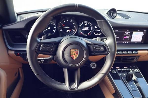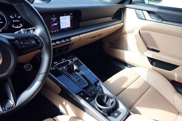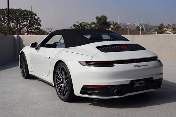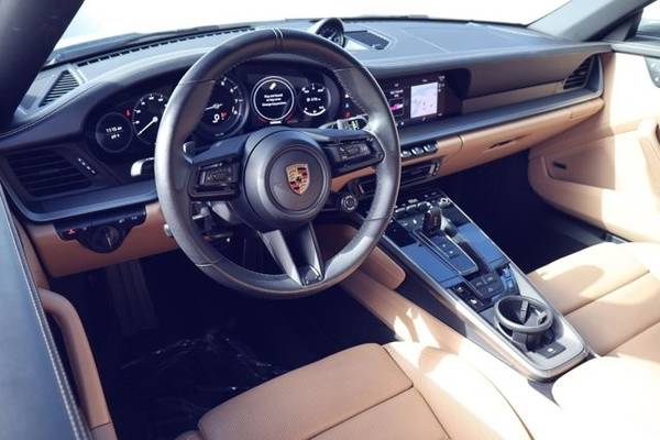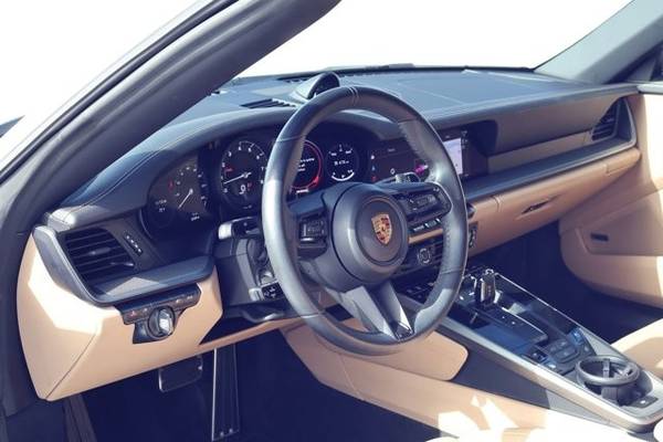 * Sport Package * Premium Package * Mojave Beige/Black; Leather Seat Trim W/Two-Tone Leather Interior * Sport Exhaust System * Wheels: 20" Front/21" Rear 911 Turbo * Sport Chrono Package * Front Axle Lift System * 14-Way Power Sport Seats W/Memory Package * Rear Axle Steering * Bose Surround Sound System * Porsche Dynamic Light System Plus (Pdls+) * Carrara White Metallic * Heated Gt Sport Steering Wheel In Leather * Leather Seats * Navigation System * 23.7 Gal. Extended Range Fuel Tank * Keyless Start * Rear Spoiler * Convertible Soft Top * Black TopThis vehicle includes a Money-Back Guarantee* and passed our precise inspection process. Best of all the price you see is the price you pay. No haggling. No back and forth. No pressure. And this price is so good it is guaranteed. *Money-Back Guarantee is valid for 5 days or 250 miles, whichever comes first. Subject to certain terms and conditions. See store for details. Some restrictions apply.2023 Porsche 911 Carrera S Cabriolet Carrara White Metallic, Highly Optioned, 15k Miles, Sport Package, Sport Exhaust, Rear-Axle Steering This 2023 Porsche 911 Carrera S Cabriolet is finished in Carrara White Metallic over a Black & Mojave Beige leather interior and shows 15,079 miles . Power comes from a twin-turbocharged 3.0-liter flat-six paired with a 7-speed PDK dual-clutch transmission and rear-wheel drive. The car is equipped with an extensive list of factory options including the Sport Package , Sport Exhaust , PASM Sport Suspension , Rear-Axle Steering , Front Axle Lift , Premium Package , 20/21 911 Turbo Wheels , Sport Chrono , PDLS+ , Surround View , Ventilated Seats , and more. Exterior Finished in Carrara White Metallic (2Y) , this Cabriolet features a Black power-folding soft top and Exclusive Design tailpipes in silver as part of the Sport Exhaust System (0P5) . Additional exterior equipment includes: 20/21 911 Turbo Wheels (46L) Power-Folding Exterior Mirrors (6XV) Porsche Dynamic Light System Plus PDLS+ (8IS) Front Axle Lift System (2UH) Sport Design Elements via Sport Package (P3U) The paint and bodywork present cleanly, and the power convertible top operates normally. Interior The cabin is trimmed in Leather Interior in Black/Mojave Beige (BO) with heated 14-way Power Sport Seats w/ Memory (Q2J) . The interior shows light wear consistent with mileage and includes the following optional equipment: Ventilated Front Seats (4D3) Heated GT Sport Steering Wheel in Leather (2PJ) Ambient Lighting (QQ2) Storage Package (QE1) Premium Package (P3R) , adding: Bose Surround Sound System Surround View (KA6) Lane Change Assist (7Y1) Power Sport Seats Other comfort/convenience upgrades Standard equipment includes Apple CarPlay, navigation, dual-zone climate control, keyless go, and a power-operated wind deflector. Powertrain & Performance The 3.0L twin-turbo flat-six produces 443 horsepower and 390 lb-ft of torque , sent to the rear wheels via a PDK dual-clutch automatic transmission . This example is optioned for performance with: Sport Package (P3U) Sport Exhaust System (0P5) PASM Sport Suspension, 10mm Lower (1BV) Sport Chrono Package (8LH) Rear Axle Steering (0N5) Extended Range 23.7-gallon Fuel Tank (0I2) Factory 060 mph time is approximately 3.5 seconds with a top speed around 190 mph . Additional Details VIN: WP0CB2A92PS247566 Mileage: 15,079 Engine Appearance & mechanicals all operate without known issues Clean interior and exterior, well-kept throughout Two-door Cabriolet with full leather upgrade and desirable performance options Included Factory Options Summary Premium Package (P3R) $5,350 Sport Package (P3U) $5,460 Leather Interior in Black/Mojave Beige (BO) $4,260 Rear Axle Steering (0N5) $2,090 Front Axle Lift (2UH) $2,770 20/21 911 Turbo Wheels (46L) $2,840 Ventilated Seats (4D3) Sport Exhaust w/ Exclusive Tailpipes (0P5) PASM Sport Suspension 10mm (1BV) Sport Chrono Package (8LH) Heated GT Sport Steering Wheel (2PJ) Ambient Lighting (QQ2) Power-Folding Mirrors (6XV) Surround View (KA6) Lane Change Assist (7Y1) Extended Range Fuel Tank (0I2)