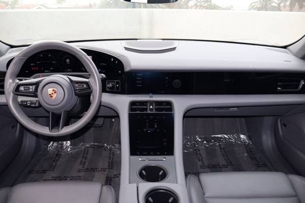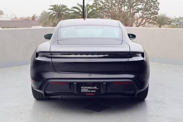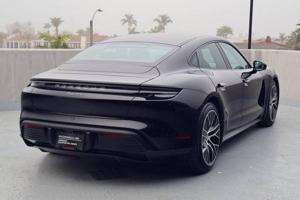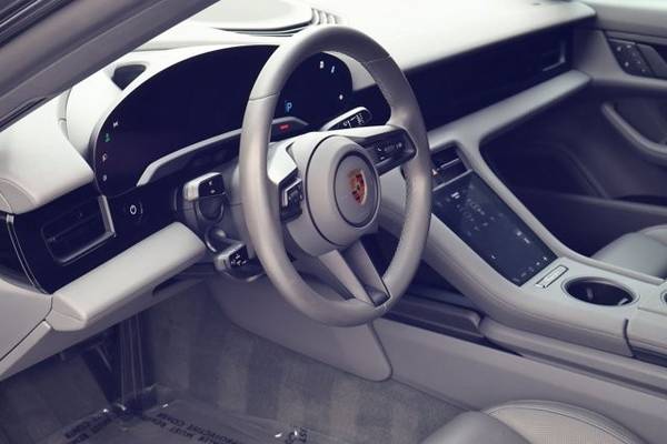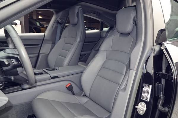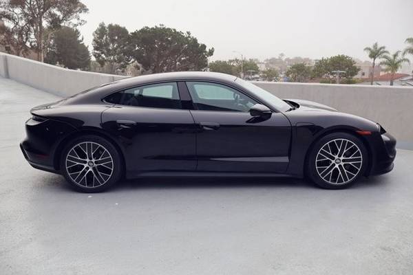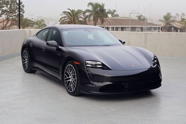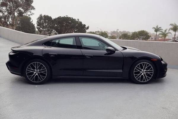 The following items have been reconditioned on this vehicle: new pair of tires! * Slate Grey; Leather Seat Trim W/Leather Interior * Jet Black Metallic * Leather Seats * Navigation System * Lane Keeping Assist * Keyless Start * Rear SpoilerThis vehicle includes a Money-Back Guarantee* and passed our precise inspection process. Best of all the price you see is the price you pay. No haggling. No back and forth. No pressure. And this price is so good it is guaranteed. *Money-Back Guarantee is valid for 5 days or 250 miles, whichever comes first. Subject to certain terms and conditions. See store for details. Some restrictions apply.2023 Porsche Taycan Premium Package, BOSE Audio, 20 Turbo Aero Wheels, Jet Black Metallic 10,899 Miles This 2023 Porsche Taycan is finished in Jet Black Metallic over a Slate Grey interior and shows just 10,899 miles . It is powered by a dual-motor setup delivering 402 horsepower (469 hp with overboost) to all four wheels through a two-speed rear transaxle and single-speed front unit , paired with a 93.4-kWh Performance Battery . Factory options include the Premium Package , BOSE Surround Sound System , Fixed Panoramic Glass Roof , Surround View Camera , Ventilated 14-way Power Seats , Lane Change Assist , 20 Taycan Turbo Aero Wheels , and more. Originally sold with an MSRP of $99,830 , this Taycan remains under Porsche factory warranty through January 2027 (or 50,000 miles). It is now offered with a clean title, clean Carfax report, and the original documentation. Exterior Finished in Jet Black Metallic ($800) , this Taycan features a sleek, aerodynamically optimized body design that emphasizes Porsches modern electric styling cues. The 20 Taycan Turbo Aero Wheels ($2,380) are wrapped in performance tires, and the Window Trim in High Gloss Black ($400) further enhances its minimalist appearance. Additional exterior features include: Fixed Panoramic Roof in Glass (3FG) LED Headlights with Porsche Dynamic Light System Plus (PDLS+) Power Folding Exterior Mirrors (6XV) Flush door handles Automatic rear spoiler deployment Front trunk and power rear tailgate Surround View (KA6) with 3D 360 camera system The paintwork retains a deep, mirror-like gloss, showing only light wear consistent with mileage. All glass panels, lighting, and trim remain clear and undamaged. Interior The cabin is upholstered in Standard Interior in Slate Grey , showcasing a minimalist, high-tech cockpit layout. The Premium Package ($5,960) includes: Four-zone automatic climate control Power Seats (14-way) with Comfort Memory (Q2J) Heated and Ventilated Front Seats (4D3) Ambient Lighting (QQ1) Ionizer (2V4) Fixed Panoramic Glass Roof (3FG) Lane Change Assist (79J) Other features include: BOSE Surround Sound System ($1,200) Porsche Communication Management (PCM) with Navigation Apple CarPlay / Android Auto Touchscreen climate and control interface Digital instrument cluster Storage Package (QE1) Rear 2+1 Seating ($480) On-board 150 kW / 400V DC Charger ($460) The cabin presents beautifully, with tight-fitting panels, unmarked leather, and all switchgear operating as designed. Powertrain & Performance The Taycan s dual-motor, all-wheel-drive system delivers instant torque and smooth, consistent acceleration. The combined output is 402 hp and 254 lb-ft of torque in standard driving, or up to 469 hp during overboost with Launch Control. Performance specifications (per Porsche): 060 mph: 4.8 seconds Top speed: 143 mph Range: Approx. 200+ miles (EPA rated) Power is managed through a two-speed transmission on the rear axle for seamless acceleration and high-speed efficiency. The On-Board 150 kW DC Fast Charger allows rapid charging on compatible networks, achieving 580% in as little as 22 minutes. Standard mechanical features include: Porsche Active Aerodynamics (PAA) with adjustable cooling flaps Adaptive regenerative braking Porsche Stability Management (PSM) Double-wishbone front and multi-link rear suspension Power Steering Plus Automatic start/stop system (for HVAC & auxiliary systems) Standard Equipment Highlights LED Daytime Running Lights and Taillamps Porsche Communication Management (PCM) with Navigation Dual touchscreen control layout Front and rear parking sensors Cruise control and lane keeping assist Keyless drive with proximity entry Rain-sensing wipers Split-folding rear seats Tire Pressure Monitoring System (TPMS) Power tailgate Multiple drive modes (Normal, Sport, Range) Factory Options Summary ($13,130 in Options) Code Description MSRP (USD) P4E Premium Package $5,960 9VL BOSE Surround Sound System $1,200 47I 20 Taycan Turbo Aero Wheels $2,380 2T Jet Black Metallic $800 QJ4 Window Trim in High Gloss Black $400 5KA Rear 2+1 Seats $480 KM2 On-Board 150 kW/400V DC Charger $460 Misc. Delivery, Processing, Handling $1,450 Total MSRP: $99,830 Ownership and Condition This Taycan has been dealer-serviced and garage-kept , showing no accidents or damage on its clean Carfax report . The exterior and interior present in excellent condition with only minimal signs of use. The vehicle remains under factory warranty until January 2027 (or 50,000 miles). Charging equipment and both key fobs are included with the sale. Included in the Sale Original window sticker / build sheet Two key fobs Owners manuals Charging cable and accessories Clean Carfax report Summary With its striking Jet Black Metallic finish, refined Slate Grey interior, and desirable Premium Package , this 2023 Porsche Taycan offers the perfect blend of performance, luxury, and cutting-edge EV technology. With under 11k miles and a clean history, its a modern Porsche that delivers the soul of a sports car with the silence of electrification ready for its next enthusiast owner.