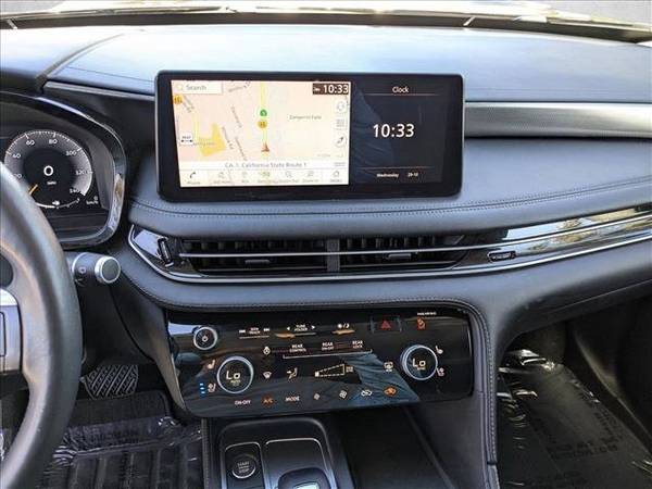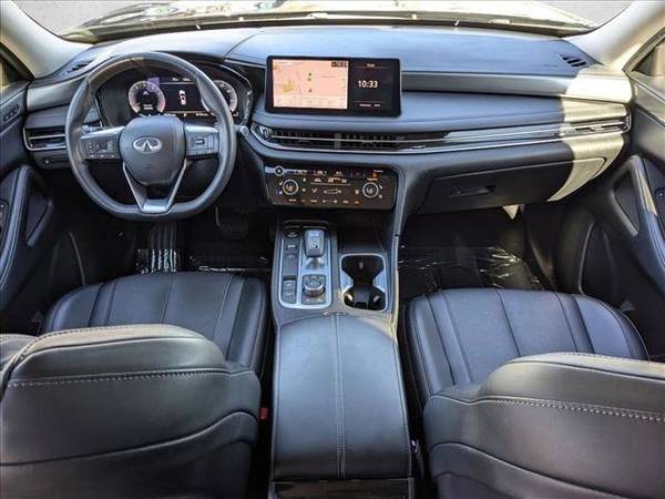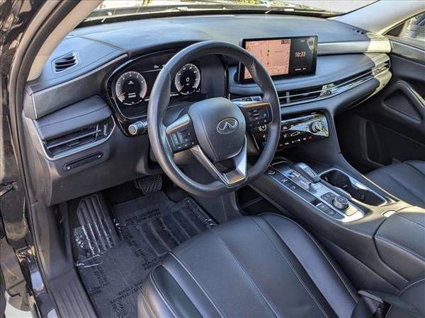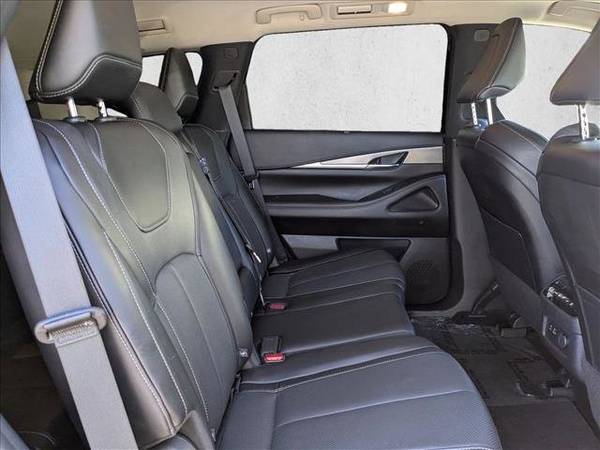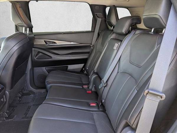 * Panoramic Roof * Leather Seats * Navigation System * 3rd Row Seat * [B92] Splash Guards (Set Of 4) * Lane Keeping Assist * Keyless Start * Rear Spoiler * Cooled Front Seat(S) * [C03] 50 State Emissions * Graphite; Leather-Appointed Seating Surfaces * Mineral BlackThis vehicle includes a Money-Back Guarantee* and passed our precise inspection process. Best of all the price you see is the price you pay. No haggling. No back and forth. No pressure. And this price is so good it is guaranteed. *Money-Back Guarantee is valid for 5 days or 250 miles, whichever comes first. Subject to certain terms and conditions. See store for details. Some restrictions apply.2024 INFINITI QX60 LUXE 1 Owner, Clean CARFAX, Rare Find in Los Angeles County Experience refined elegance and powerful capability in this 2024 INFINITI QX60 LUXE , a rare one-owner SUV with a clean CARFAX and showroom-level conditionnow available at Land Rover South Bay , your trusted luxury car destination in Torrance, California , serving all of Los Angeles County . This QX60 blends modern sophistication with versatile performance, featuring a bold exterior design with flowing lines, signature INFINITI LED lighting, and premium alloy wheels. Inside, it welcomes you with a thoughtfully crafted 7-passenger interior , complete with leather-appointed seating , heated front seats , a panoramic moonroof , tri-zone climate control , and an intuitive INFINITI InTouch infotainment system with Apple CarPlay and Android Auto . Under the hood, the QX60 LUXE is powered by a responsive 3.5L V6 engine , delivering confident acceleration and smooth highway cruisingperfect for city commutes or weekend getaways along the Pacific Coast. With impressive fuel efficiency for its class, it keeps you going longer between fill-ups, while the advanced intelligent all-wheel drive (AWD) system ensures confident handling in all weather conditions. This model also offers a full suite of driver assistance features including Blind Spot Warning , Forward Emergency Braking , Rear Cross-Traffic Alert , and Intelligent Cruise Control earning top marks for safety, comfort, and peace of mind. As part of the AutoNation 1Price program, you get a transparent, no-haggle pricing experience backed by our 5-day/250-mile Money-Back Guarantee , 125-point inspection , and limited warranty eligibility . Plus, a free CARFAX Vehicle History Report is provided with every vehicle we sell. With over 400 vehicles across four inventory lots , Land Rover South Bay offers unbeatable variety and trusted selection. This particular QX60 is a rare gem low mileage, meticulously cared for, and highly sought after by savvy Los Angeles luxury SUV buyers.