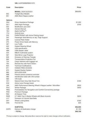 The following items have been reconditioned on this vehicle: new brakes and all new tires! * Driver Assistance Package * Amg ® Night Package * Panoramic Roof * Amg ® Performance Steering Wheel In Nappa/Microfiber * Leather Seats * Navigation System * Winter Package * Mb-Tex Dashboard & Door Panels * Wheels: 21" Amg ® Twin 5-Spoke Matte Black * Natural Grain Grey Oak Trim * Wheel Locking Bolts * Lane Keeping Assist * Keyless Start * Rear Spoiler * First Aid Kit * Cooled Front Seat(S) * Black; Nappa Leather Seat Trim * Omission Of Color Seatbelts * Twilight Blue MetallicThis vehicle includes a Money-Back Guarantee* and passed our precise inspection process. Best of all the price you see is the price you pay. No haggling. No back and forth. No pressure. And this price is so good it is guaranteed. *Money-Back Guarantee is valid for 5 days or 250 miles, whichever comes first. Subject to certain terms and conditions. See store for details. Some restrictions apply.The GLE AMG GLE 53 doesn't disappoint, and comes with all the quality and understated opulence buyers have come to expect from the respected Mercedes-Benz marque. A truly versatile SUV, this vehicle will please even the most discerning of buyers. Navigate through all the icky weather with ease in this AWD-equipped Mercedes-Benz GLE, and even get non-stop traction for your non-stop lifestyle! In addition to the amazing traction control, you may even qualify for an insurance reduction with this AWD vehicle. If you are looking for a pre-owned vehicle that looks brand-new, look no further than this Black Mercedes-Benz GLE. A true feat of engineering, this Mercedes-Benz GLE AMG GLE 53 has otherworldly acceleration, prodigious power and is accompanied by the prestigious reputation of Mercedes-Benz. Although it may not make much sense, this vehicle will undoubtedly provide a memorable experience every time you drive it.