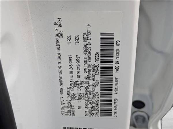 * Sr5 Upgrade Package & Cold Weather Package * Spray-On Bed Liner (Tms) * Door Edge Guard (Tms) * Gunmetal Tailgate Insert (Tms) * Lane Keeping Assist * Deck Rail System (Ds) * Front & Rear Mud Guards * Keyless Start * 50 State Emissions * Black; Fabric Seat Trim (Ff) * Ice CapThis vehicle includes a Money-Back Guarantee* and passed our precise inspection process. Best of all the price you see is the price you pay. No haggling. No back and forth. No pressure. And this price is so good it is guaranteed. *Money-Back Guarantee is valid for 5 days or 250 miles, whichever comes first. Subject to certain terms and conditions. See store for details. Some restrictions apply.