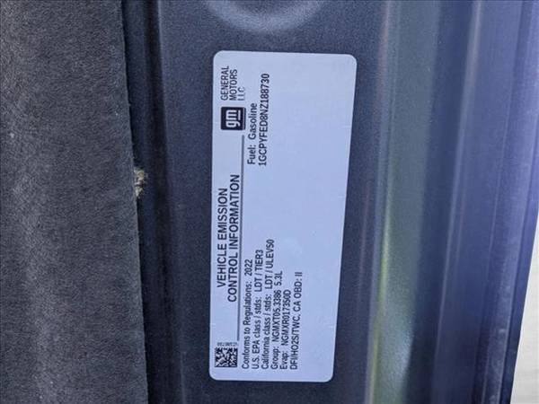 * Safety Package * Keyless Start * Audio System; Chevrolet Infotainment 3 System * Emissions; California State Requirements * Engine; 5.3L Ecotec3 V8 * Front And Rear Park Assist; Ultrasonic * Gvwr; 7000 Lbs. (3175 Kg) * Jet Black; Cloth Seat Trim * Lane Change Alert With Side Blind Zone Alert * License Plate Kit; Front * Lt Trail Boss Preferred Equipment Group * Rear Axle; 3.23 Ratio * Rear Cross Traffic Alert * Seats; Front Bucket * Shadow Gray Metallic * Tire; Spare 265/70R17Sl All-Season; Blackwall * Tires; Lt275/65R18C Mt Blackwall Goodyear Wrangler Duratrac * Transmission; 10-Speed Automatic; Electronically Controlled * Wheels; 18" X 8.5" (45.7 Cm X 21.6 Cm) High Gloss Black Painted Aluminum * Not Equipped With Heated Steering Wheel; See Dealer For Details * Not Equipped With Automatic Stop/Start * Not Equipped With Front And Rear Park Assist; See Dealer For Details * Not Equipped With Heated Or Ventilated Front Seats; See Dealer For DetailsThis vehicle includes a Money-Back Guarantee* and passed our precise inspection process. Best of all the price you see is the price you pay. No haggling. No back and forth. No pressure. And this price is so good it is guaranteed. *Money-Back Guarantee is valid for 5 days or 250 miles, whichever comes first. Subject to certain terms and conditions. See store for details. Some restrictions apply.