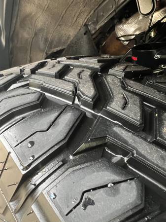 33” Toyo R/T on 17” pro comp wheels. The tires still have the nipples left on some of the tread and on the side walls.
