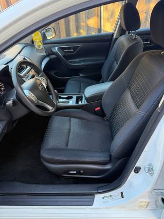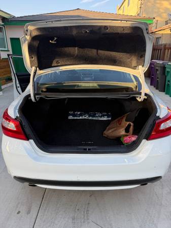 2016 Nissan Altima 2.5 S for sale by owner in Long Beach. White exterior with black cloth interior. 2.5L 4-cylinder. Automatic. 115k miles, most of them highway Body has some minor damage (see pictures) but the car runs great. Only two owners. We have the title and Car Fax report. Features include: keyless start and entry, backup camera, bluetooth, cruise control, AM/FM/CD plus portable audio connection, 12 volt socket and USB port, cloth floormats. Electric windows and drivers seat controls. Cash only. Will consider reasonable offers.