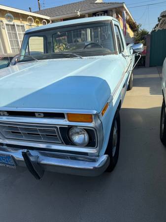 1976 Ford F250 L/B 2wd, faded/patina light blue, 390 ci/bb, 129K miles, 4 speed manual transmission, runs strong, has 5 new LT 16 tires, new dual tanks 20/12 gallon m, new fuel hoses, new plugs, wires, cap, rotor, coil, fuel pump and filter, rebuilt metal radiator, rebuilt carburetor, new fluids in trans, diff, all glass in great shape, no cracks, needs interior redone, needs cluster, radio, no ac, solid truck, clean title