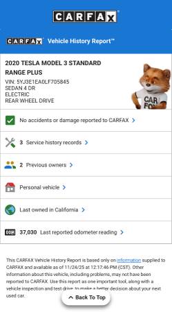 Selling my 2020 Tesla Model 3 Standard Range Plus Clean title - One Owner Vehicle Clean Carfax – No accidents 46,000 miles Battery Still under Tesla factory warranty Vin: 5YJ3E1EA0LF705845 Price:...