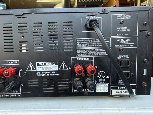 The AVR-35 is a vintage 5.1-channel A/V receiver that delivers rich, warm tone with the kind of analog power and clarity you rarely find today. Rated at 55 watts per channel (Harman watts — clean and conservative), it drives bookshelf or tower speakers beautifully and pairs especially well with JBL, Infinity, Polk, and KEF models.