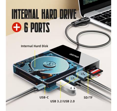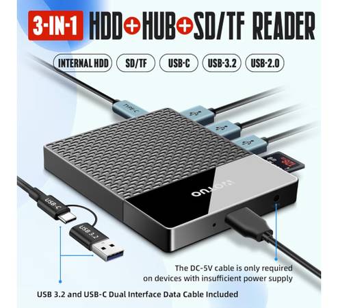 1TB External Hard Drive, USB C Multiport Hub HDD 7-in-1, USB 3.0, SD/TF Card Reader, Docking Station, Multi-Function HDD for Windows, Mac, Android, TV, Phone, Laptop, Desktop, PC open box new selling for only $40