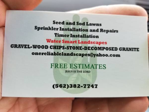 RELIABLE LANDSCAPES & GARDENING SERVICES. Reasonable Prices. You can contact me at . Call today for a Free Estimate. Thanks for looking and have a blessed day.