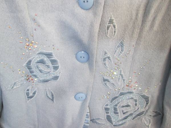 Size M, (6) - floral embroidery with button closure. you really need to see this in person. It is so pretty! Very festive, soft and different