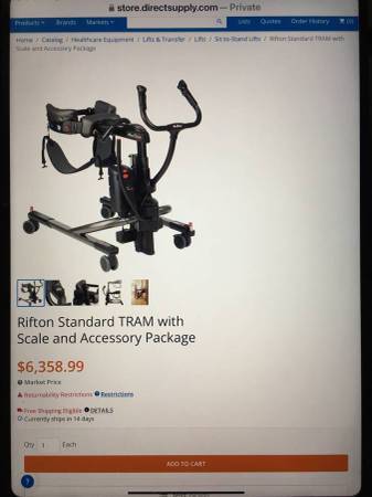 Rifton TRAM - Lift and Transfer (Orig. $ 6,000) Ultra-light compact frame is easy to maneuver in tight spaces, and intuitive controls and adjustments make it simple for a single caregiver to operate...