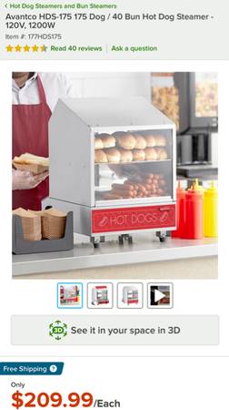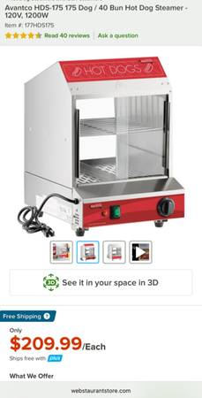 Avantco HDS-175 175 Dog / 40 Bun Hot Dog Steamer - 120V, 1200W - $150 (LONG BEACH)
