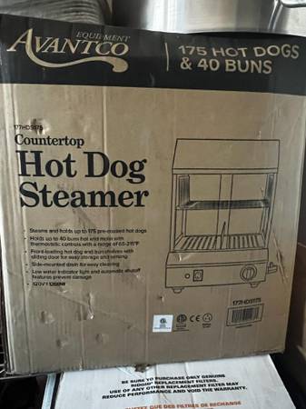 Avantco HDS-175 175 Dog / 40 Bun Hot Dog Steamer - 120V, 1200W like new used once for. Kids party can be used for commercial used or a kids party selling for only $140