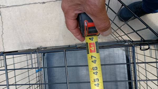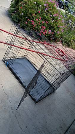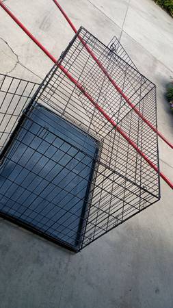 Giant two-door metal folding pet cage with plastic tray. 32 in tall 48 in length 30 in width excellent condition