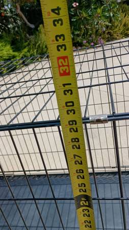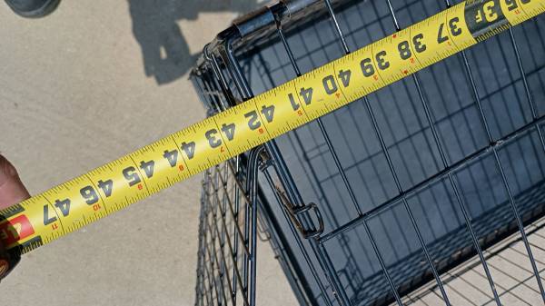 Large single door folding metal pet cage with tray. 29 in tall 42 in Long 27 1/2 in wide excellent condition