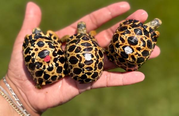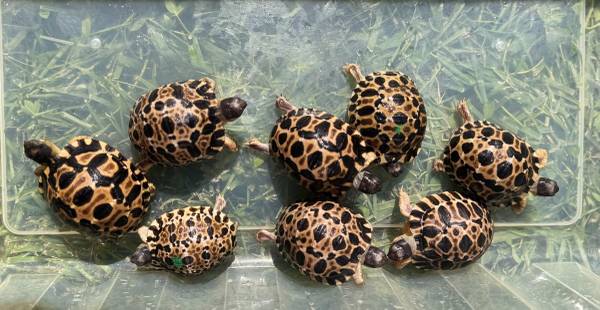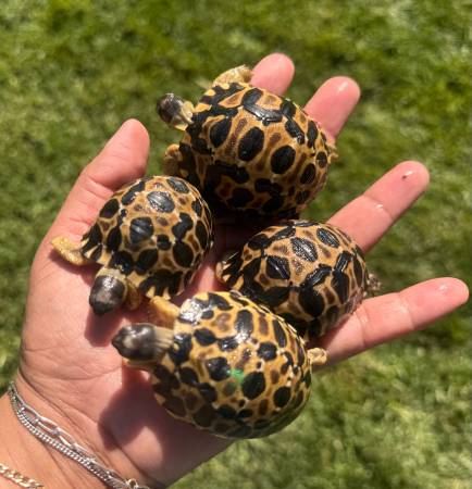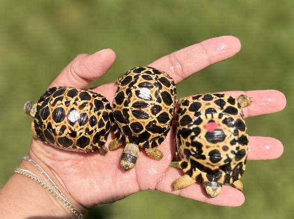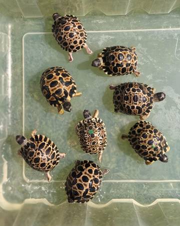 Radiated hatchlings from 2 unrelated bloodlines. Hatchlings have been raised hot and humid and are thriving. They are vigorously feeding on mixed greens, grasses, weeds, flowers, chopped cactus and a few other store bought goodies.