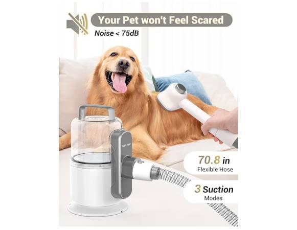 Simpleway Vacuum Grooming Kit for Shedding: Professional Hair Clippers Pet Groomer - Deshedding Tool Fur Brush Attachment Trimmer for Home Cat (Cream White) open box new selling for only $45