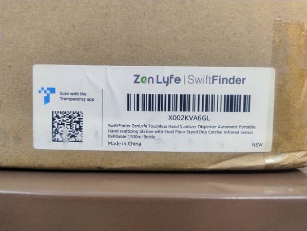Brand new, unopened box. ZenLyfe white touchless hand sanitizer dispenser. Includes 48-inch metal floor stand, drip catcher, infrared sensor, and refillable 1,200 ml (40.5 fl oz) bottle. Requires 4...