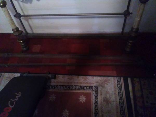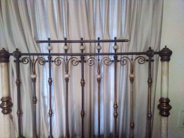 Vintage bed headboard set approximately 1940s Steel and brass Very heavy - takes two people to move 8 feet in length Have all misc. fittings and parts 7 six zero 9 one 7 seven five 0 7