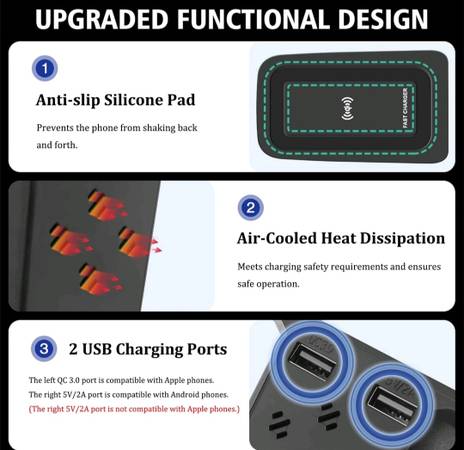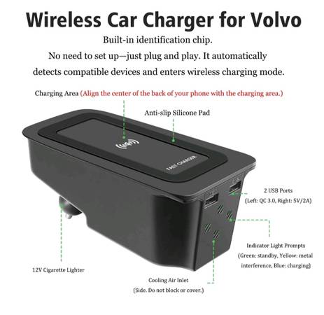 Wireless Car Charger for Volvo XC90 XC60 V90 V60 S90 S60, Car Wireless Charging Pad with QC 3.0 USB Port open box new selling for only $30