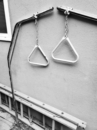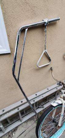 Hospital bed hangars trapeze type 2 Photos are examples Others by tan wall are actual Do not have base or bed Do not have clamps