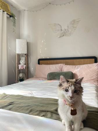She is a little feisty but she is sweet when she want to be as usual for girl cats !! Giving her away to a loving home . Please text me for serious inquiries!! Will give all the stuff I have for her for extra $300 . She has all her shots all up to date . For extra $300 it includes her metal litter box , the litter to litter box, toys and clothes ,food plates , and food , beds and blankets!!! If you are serious text my number (562) - two 8 four- 7 one one four