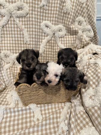 Rehoming schnauzer pups They are 8 weeks old on 10/17 and ready to go to there new and forever homes Comes with docked tails First round of shots Dewormed Please only serious family’s that are ready...