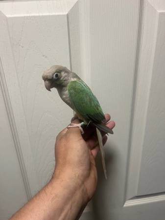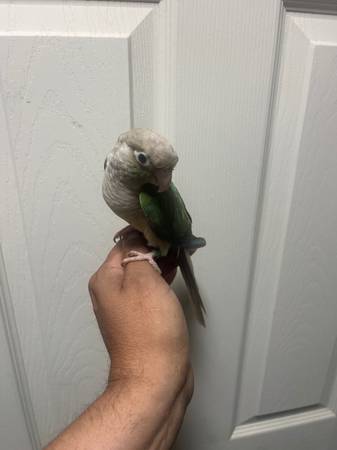 Looking for new home, DNA male mint green cheek conure, was hand-fed it’s a little jumpy needs more handling, does not bite, about 1 1/2 year old, rehoming fee is $250 , serious inquiries only please