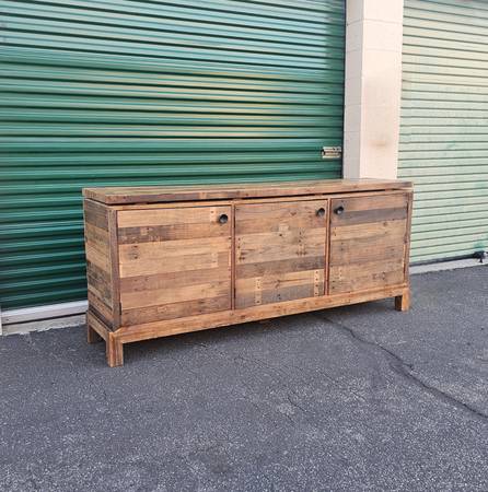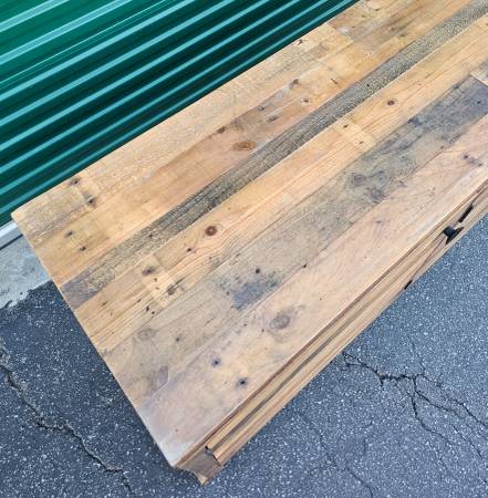 This is crafted from reclaimed wood with natural variations in the wood grain and tone. There is a small area of wear on the legs as pictured.