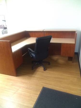 I HAVE NEW 6.5' X 6' L- SHAPE RECEPTION UNITS IN THREE COLORS THAT ARE AVAILABLE. IN ADDITION, I HAVE CHAIRS, FILES, CONFERENCE TABLES AND CUBICLES AT HIGHLY DISCOUNTED PRICES. CALL BOB AT FOR MORE...