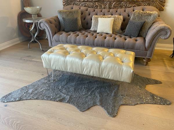 Gorgeous, Hi-end “Restoration Hardware” Top-grain Leather Bench (with acrylic legs) that was custom-made, and originally cost $1900!