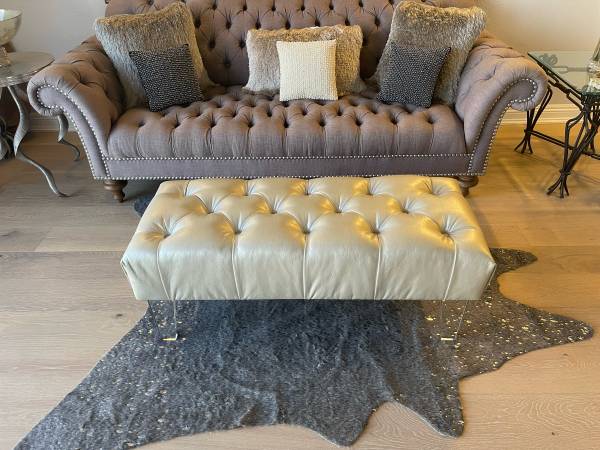 • Restoration Hardware top-grain leather benches with sleek acrylic legs, custom-made, now only $495 (originally $1900).