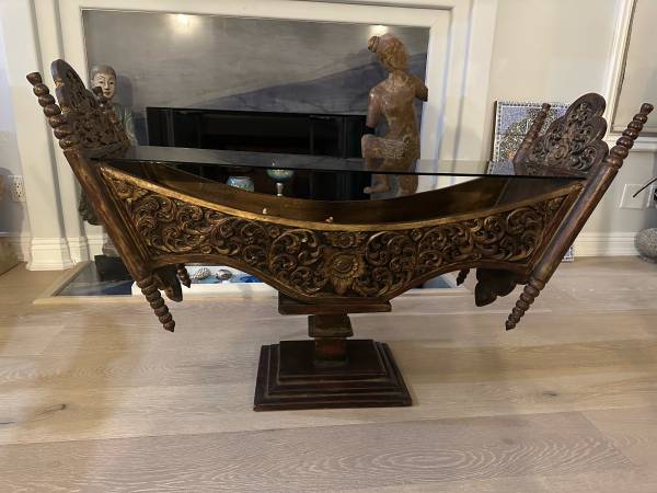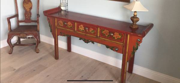 3. Antique Red Asian Console Table – A hand-painted heirloom with a certificate of authenticity for $950.