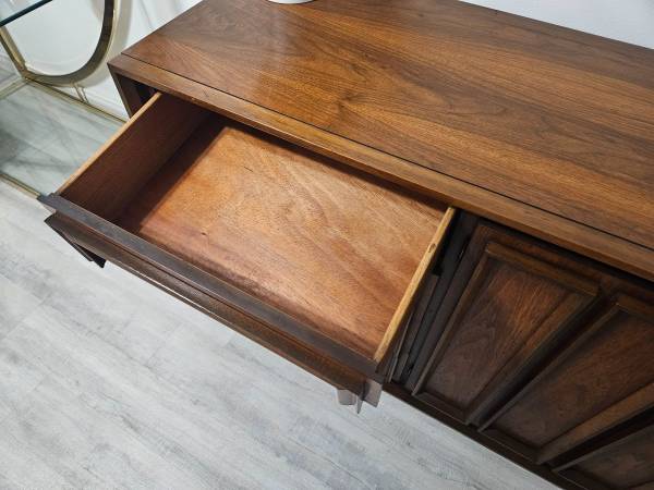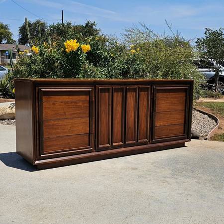 Very beautiful plinth base Mid Century Modern Dresser. Features a total of 12 drawers, yes 12. Thats alot of space for storage which you don't find too often in mcm pieces. Solid sturdy piece that will last for years to come. Smoke free, pet free home. Minor wear consistent with vintage age. Overall good condition. Drawers function as designed. Pick up is in Downey. Delivery available for a separate fee. Small deposit required for delivery and holds.