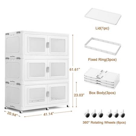 New 960Quart Extra Large Plastic Storage Bins Container, Stackable Collapsible Wheeled 240gal Heavy Duty Storage Box with Lid and Doors for Home Bedroom Closet, 80gal 3-Pack, White