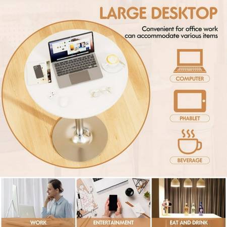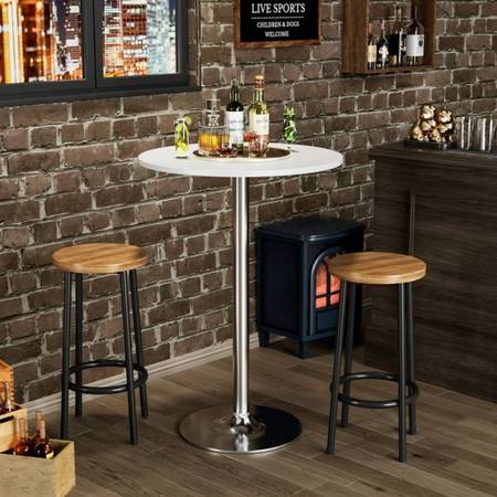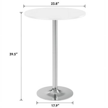 Round Bistro Pub Table is perfect for bars and parties and provides you an easy access to the coffee,drinks or snack.Ergonomic design of perfect height supports an easy conversation and Big circle table on the top provides space and convenience.Overall size:23.8-Inch Width by 23.8-Inch Depth by 39.5-Inch Height.Non-scratch plastic foot to protect the floor and metal base provides stability.Easy to assemble, an adult can assemble a table in 10 minutes.